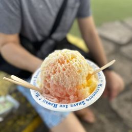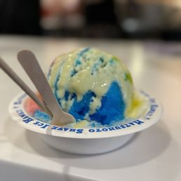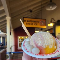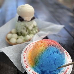 Matsumoto Shaved Ice - North Shore Nice treat after the food truck near by. Pina Colada - Li Hing Nui - Passion Fruit - Condenswd Milk and Mochi Balls Strawberry - Guava - Passion Fruit - Condensed Milk Blue Raspberry- Blue Vanilla - Watermelon Lemon - Mango - Strawberry - Condensed milk All flavors were amazing, prices were just right. I would definitely recommend adding the condensed milk! Worth the trip. Was not a fan of the mochi balls. Service was amazing, they let you know how everything works. They are super busy expect lines to be out the door BUT they also work super fast. Love that they have a Nice area outside to enjoy your shaved ice under the shade. To make things fast and easy they have their menu's posted through out the line outside for you to decide on your flavors. Help them, help you make things fast and easy and select your flavorings and extra toppings before getting to the register.